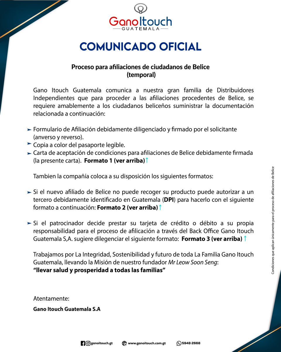 COMUNICADO OFICIAL «Proceso de afiliaciones de ciudadanos de Belice (Temporal).