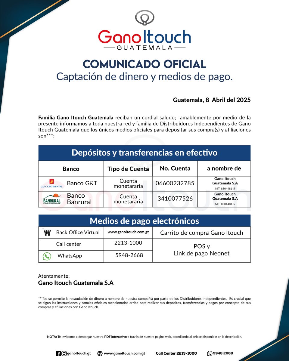 COMUNICADO – Captación de Dinero